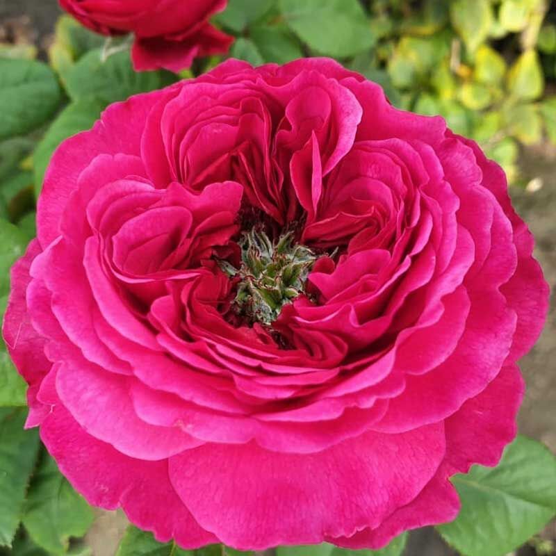Яркие темно-розовые лепестки с оборками составляют большой и идеально круглый цветок, который при раскрытии может показывать яркую пуговицу из зеленовато-желтых тычинок в центре. Япония, 2017