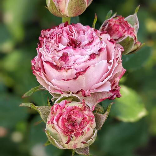 Очень красивый сорт. Плоскочашевидные цветки фиолетово-розового цвета, с кремовой изнаночной стороной лепестка. Лепестки собраны к центру с зелёными тычинками. Необычная форма цветка. Класс: чайно-гибридные, срезочные Цвет: лилово-сиреневый, с фиолетовым оттенком, с белым реверсом Кол-во цветков на стебле: 1-3 Размер цветка: 12-14 см, густомахровый Аромат: умеренный Цветение: повторное Высота: 100-120 см Ширина: 80-90 см Освещенность: яркий солнечный свет Морозостойкость высокая USDA: 6 зона Устойчивость к жаре: высокая Форма куста: прямой, широкий. Устойчивость к мучнистой росе очень высокая. Устойчивость к черной пятнистости очень высокая. Устойчивость к дождю очень высокая.