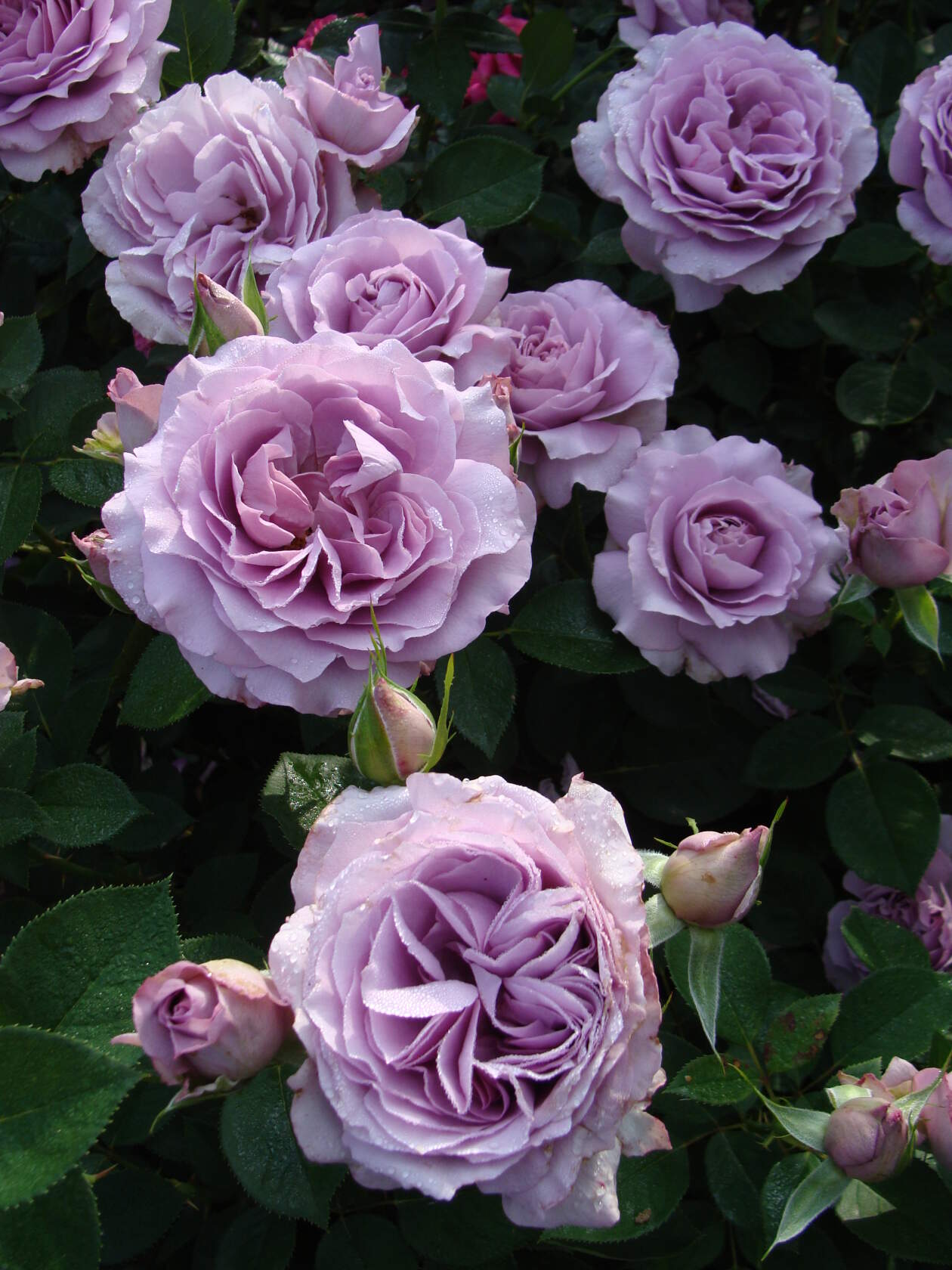 Тom Carruth, 2011 Цветки диаметром 11-12 см, махровые (35-40 лепестков), чистого ясного лавандового цвета, в малоцветковых соцветиях. Бутоны полные, яйцевидные, заострённые. Аромат умеренный, цитрусовый. Цветение повторное. Куст высотой 90-120 см, очень густой и округлый. Листья большие, полуглянцевые, устойчивые к болезням. Молодые побеги красного цвета. Высота (см): 90-100 Ширина (см): 50-60 Диаметр цветка (см): 11-12 Цвет: лавандовый Аромат: цитрусовый, умеренный Селекция: Tom Carruth, 2011 Устойчивость к болезням: 3