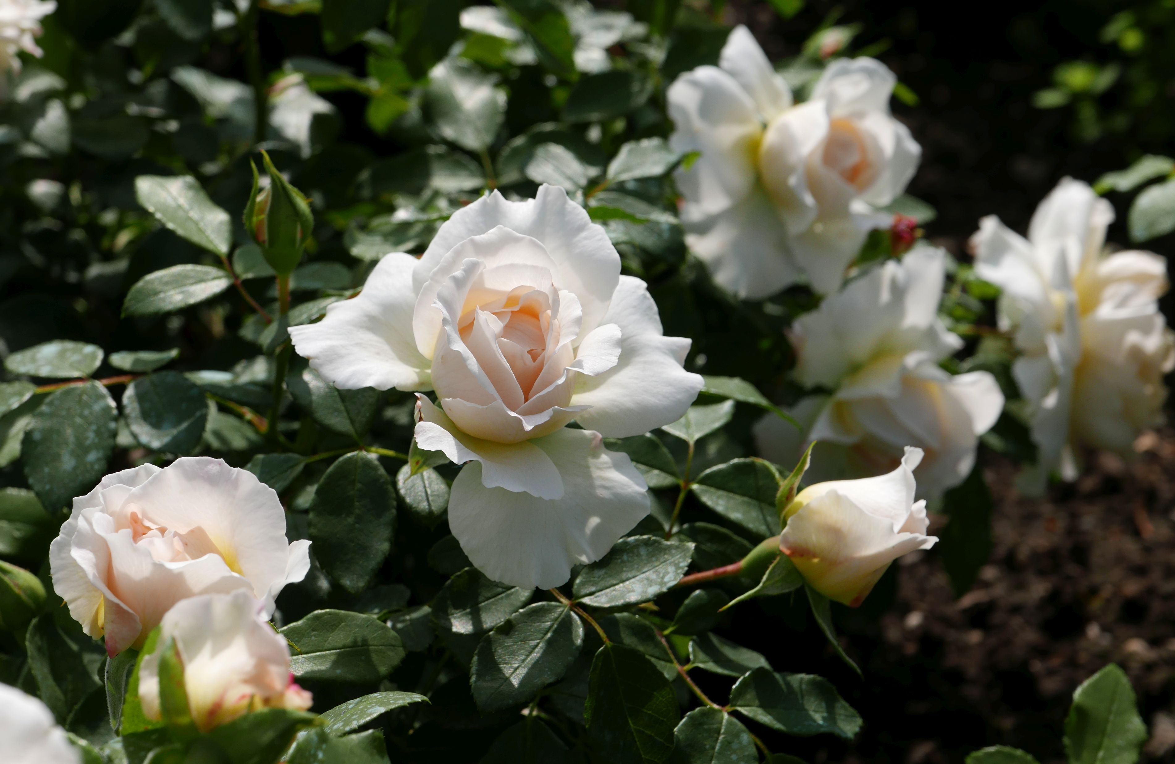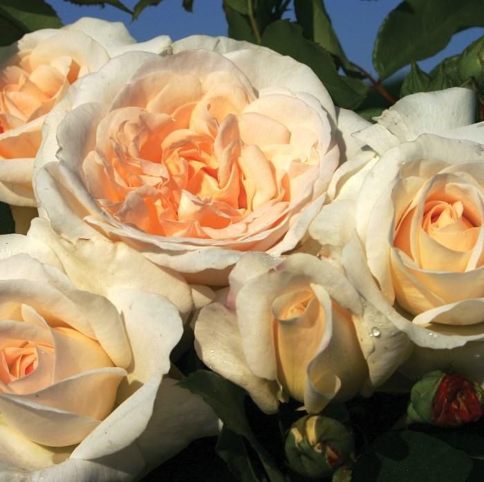 Цветки растут как поодиночке, так и в соцветиях. На каждом побеге вырастает от 1 до 3 бутонов. Кусты окутывает сильный и приятный аромат.