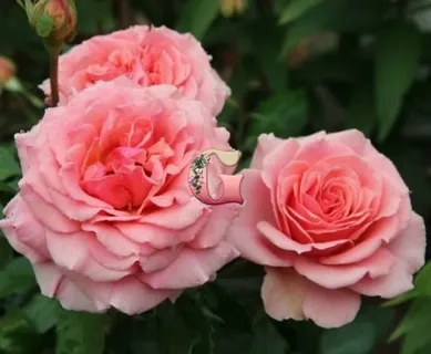 Бутоны темно-розовые, овальной формы, заостренные. Цветки среднего размера, диаметром 7-9 см, чашевидные, с приподнятым центром, густомахровые (по 60-70 лепестков). Розы лососево-розовые, с перламутровой окантовкой по краю, более темным центром и обратной стороной лепестков. Цветки располагаются на стебле по одному или собраны в соцветия до 3 шт. Аромат нежный, сладковатый.