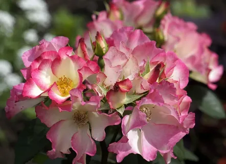 Класс: флорибунда Цвет: нежно розовый Кол-во цветков на стебле: 5-10 Размер цветка: 5-7 см, простой (4-8 лепестков) Аромат: лёгкий Цветение: повторное, очень обильное Высота: 70-90 см Ширина: 60-100 см Освещенность: яркий солнечный свет Устойчивость к минусовой температуре: средняя USDA: 6 Устойчивость к жаре: высокая Форма куста: полу-раскидистый, округлый Обрезка: санитарная, омолаживающая Селекция: Enrico Barni Италия, 2003