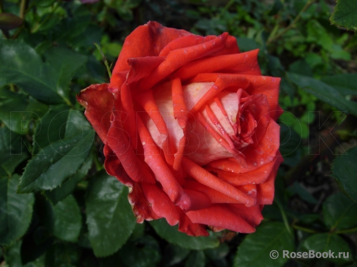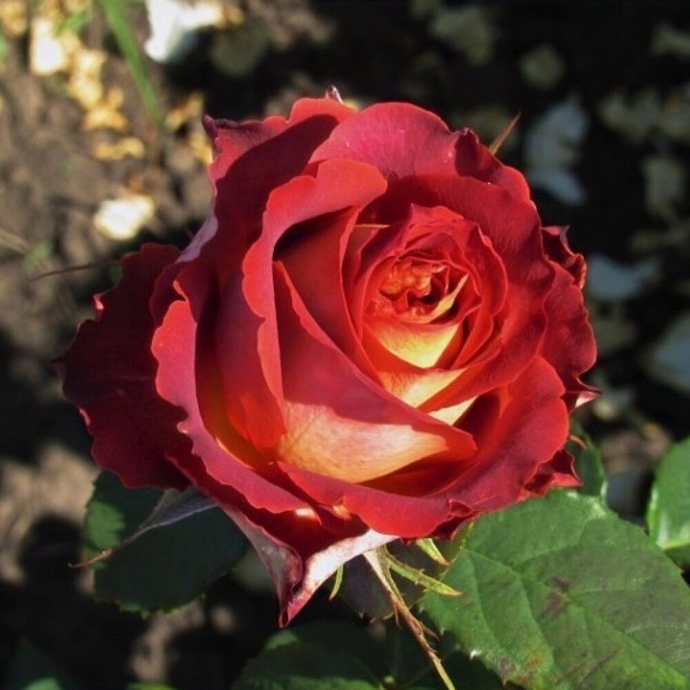 Цвет – биколор, с терракотово-красной внутренней стороной лепестков и бархатисто-белой наружной. Цвет почти коричневый. Лепестки к краям приобретают более насыщенный тепло-пурпурный тон, к центру лепестки более алые. Укладка лепестков элегантная, в меру свободная, край слегка бахромчатый, опаленный.