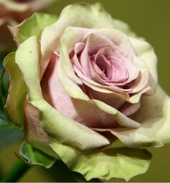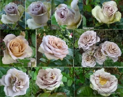 Роза Амнезия (Amnesia) - чайно-гибридный сорт, название которого, полностью соответствует виду цветка: пусть на первый взгляд он и неброский, но созерцание столь нежной красоты заставляет забыть о проблемах и напряженном ритме жизни. Средних диаметров куст с высотой в 80-120 см и диаметром в 70 см. Темно-зеленые средние листочки в основном обрамляют верхнюю часть куста, нижняя при этом почти не облиственная. Цветы окрашены в пепельно-сиреневый цвет, а основная окраска у них кофейная. Кончики лепестков выглядят слегка серебристыми, что уже уникально для розы. В целом оттенки розы выглядят приглушенными и как бы припудренными. Цветы крупные и имеют форму бокала. Густомахровые экземпляры достигают диаметра в 12 сантиметров и располагаются на стеблях одиночно. Каждый цветок содержит 26-40 пудровых лепестков. Особенностью сорта является аромат. Он очень слабый, почти неуловимый, но тонкий, свежий и нежный. Амнезия (Amnesia®) , выведенная фирмой NIRP International