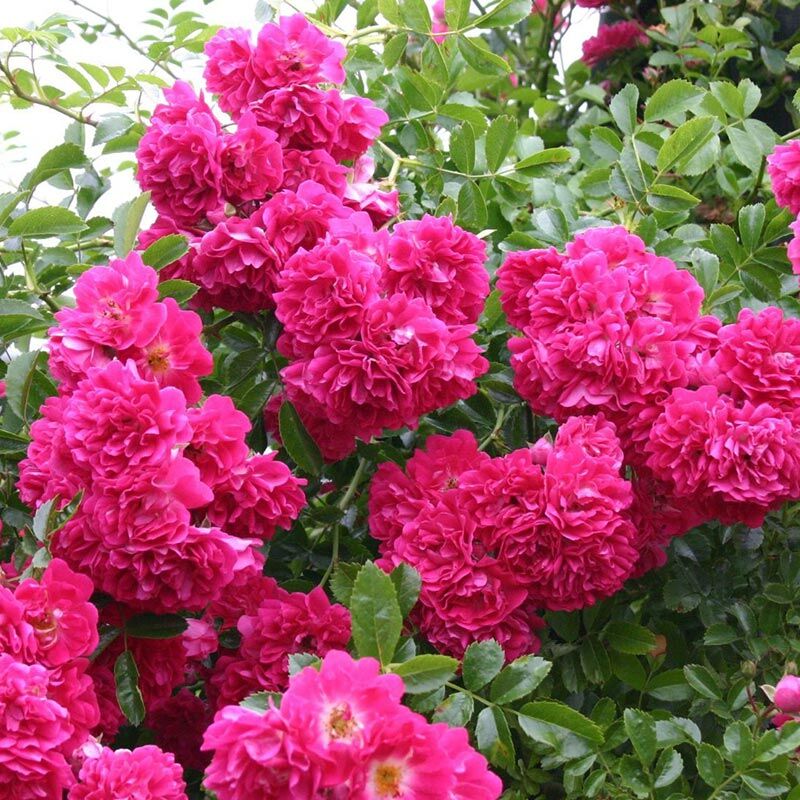 Карл Хетцель вывел Super Excelsa как улучшенную версию популярного зимостойкого старого сорта Excelsa. Это был один из его первых гибридов, получивший престижный сертификат ADR – сорт более устойчив к заболеваниям, чем Excelsa, и цветет повторно. Цветет крупными кистями густомахровых, ярко-малиновых цветков с белой серединкой. Они выгорают до пурпурных, и лепестки с оборотной стороны становятся серебристо-розовыми. Сорт не такой сильнорослый, как Excelsa, и его едва ли можно назвать клаймбером, но цветки появляются в течение всего лета после первого, очень обильного цветения. Листва темная, как у гибридов Wichurana, куст раскидистый. Хорошо подходит для обелисков и невысоких опор, а также как почвопокровная роза, великолепен на высоком плакучем штамбе. Сорт оченьзимостойкий, но хорошо растет и в жарком климате.