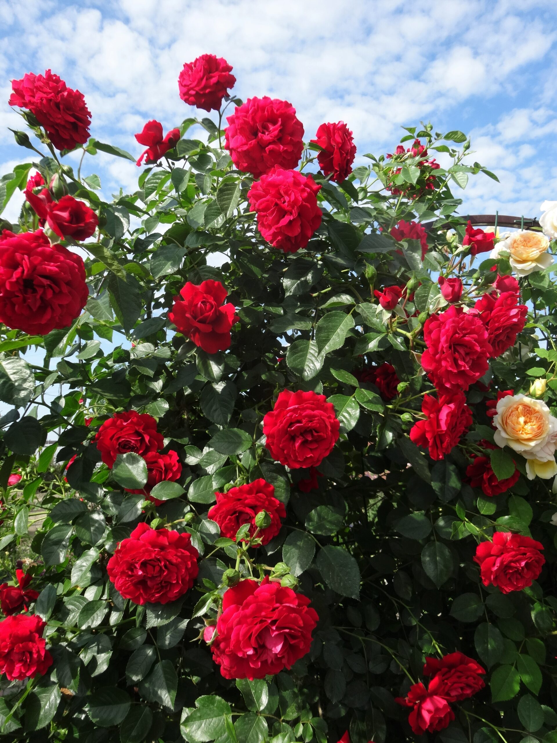 Гранд Авард (Grand Award) – плетистая роза Climber-типа из серии «Courtryard» (Внутренний дворик), представленная в Дании компанией Poulsen Roser A / S в 2009 году как “Grand Award”, что переводится как «Большая награда». Куст усыпан красивой формы крупными ярко тёмно-красными цветками диаметром 8 -10 см. густомахровыми (болеее 40 лепестков). Цветение в соцветиях, длительное, цветет обильно в июне, повторяя цветение до поздней осени. Цветки устойчивы к дождю, не выгорают. Цветение очень обильное от основания, по всей длине побегов. Аромат лёгкий, мягкий, шиповника. Куст высотой 160-240 см и шириной до 100 см, листва тёмно-зелёная, глянцевая, очень устойчивая к болезням. Розы из группы Courtyard – это вьющиеся розы с жесткими побегами. Растут они пышно, достигая высоты 2-3 м. требуют привязки к опорам. Сорт ‘Grand Award’ – здоровый сорт, с небольшими требованиями к почве, морозостойкий, цветущий долго и обильно. Предпочитает солнечные места, защищенные от ветра. Рекомендуется для посадки вдоль стен, сеток, около беседок, деревьев, столбов и других опор, на которые можно привязать побеги.