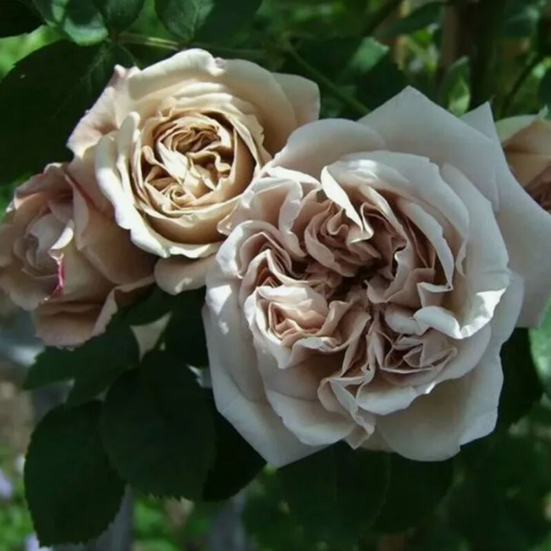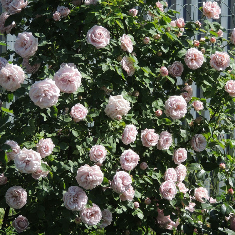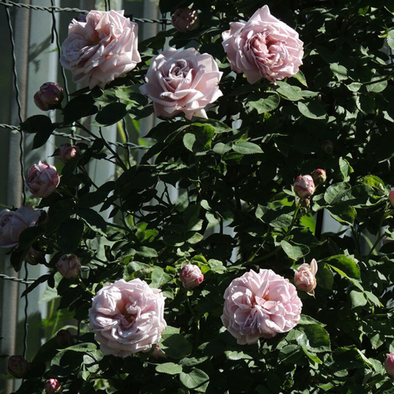 Высота (см): 300-500 Ширина (см): 200 Диаметр цветка (см): 10-11 Цвет: серо-сиренево-дымчатый Аромат: средний Селекция: Kordes, 1955 Отличительной чертой этой розы является ее цвет. Он слегка меняется, и может иметь тона сиреневого, розового или желтого, но в большинстве случаев он необыкновенный серый. Оборотная сторона лепестков более серебристая, благодаря чему создается игра теней между лепестками – это смотрится очень захватывающе, т.к. цветки густомахровые. Появляются в кистях по 3-15 шт, цветение очень обильное, но, к сожалению, однократное.