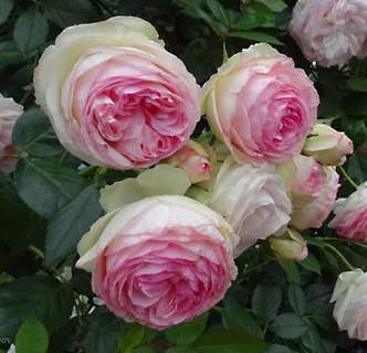 Этот невысокий ветвистый клаймбер очень популярен в странах с жарким сухим климатом, где его тяжелые, густомахровые цветки могут медленно раскрываться. Цветки крупные (10-12 см), поникают под собственным весом. Их форма изменчива: иногда цветки почти розетковидные, а иногда чашевидные, с закрученной серединкой. Цвет также меняется: как правило, цветки кремово-белые с розовым краем лепестков, но иногда розовый преобладает. Листва ярко-зеленая, куст формируют толстые, жесткие побеги. Аромат | Лёгкий аромат