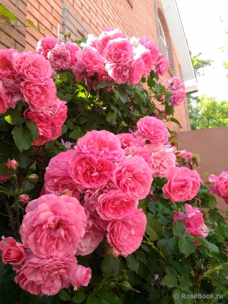Ярко-коралловые бутоны собраны в соцветия по четыре–пять штук. Бутоны чашеобразной формы, в диаметре могут достигать двенадцати сантиметров. В густомахровых сортах количество лепестков может достигать сотни! Побеги у растения плетевидные, крепкие и прямостоячие. Листочки темно-зеленого цвета с глянцевым покрытием. На толстых побегах расположены тонкие гладкие шипы. Куст достигает в высоту 3-3,5 метров. Во время цветения он настолько усыпан бутонами, что порой даже не видно листвы под ними. Цветет роза до поздней осени. Цветки со временем покрываются «серебром», что добавляет им особого шарма Высота (см): 200-350 Ширина (см): 200 Диаметр цветка (см): 9-12 Цвет: насыщенно-розовый Аромат: средний Селекция: Kordes, 1977 Устойчивость к болезням: 3